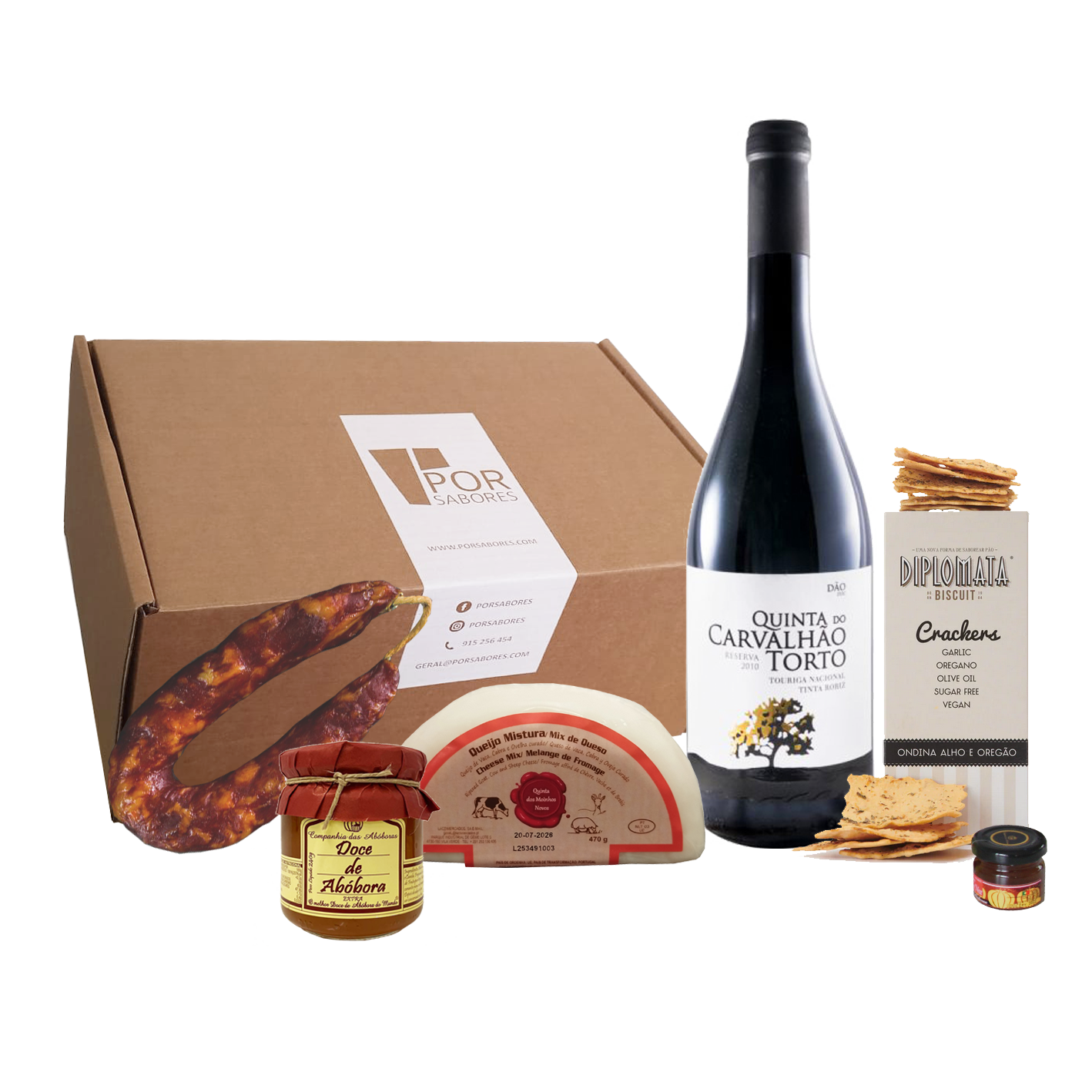 Queijo de mistura ; chouriço alentejano; doce de abóbora; vinho Quinta do Carvalhão Torto Reserva (tinto) e tostas ondina orégãos e alho.